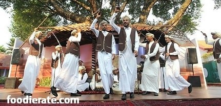 Para pengunjung bisa menonton pertunjukan music dan tarian tradisional dari seluruh wilayah Kerajaan Arab Saudi, di mana pertunjukan ini biasanya diadakan pada acara pernikahan di Kerajaan Arab, sambil menikmati secangkir kopi dari Arab.