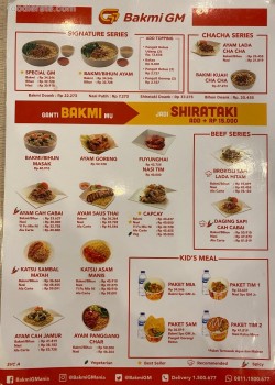"Bakmi GM, yang penting pesannya bakmi, semuanya enak. Ada jenis bakmi kuah, bakmi kering yam, sama bakmie goreng. Biasanya sih pesannya yang bakmi kering yam, soalnya maunya dipisah kuah sama bakmi. Bakmi goreng lebih jarang, karena harganya yang lebih mahal daripada bakmi lainnya (46 ribu). Bakmi gorengnya sih enak, terasa toppingnya juga lebih banyak daripada bakmi lainnya. Ada ayam, seafood udang, bakso, sayuran. Karena isi toppingnya yang lebih banyak dan beragam, terasa makan lebih kenyang kalo pesennya bakmi goreng. Hanya saja, harganya cukup mahal - 1 porsi 46 ribu. Kalo lagi ada diskon, bisa lumayan hemat."