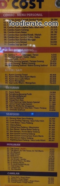 "Ayam Geprek juga ada di Dcost lho !! Ayam geprek di sini gurih dan empuk. Dia sebenarnya lebih mirip ayam goreng, karena ayamnya ga digeprek, hanya ada sambal gepreknya saja. Jadi, dasarnya adalah ayam goreng tepung + sambal geprek. Ayam gorengnya enak, tepungnya berasa gurih, hanya sayang sambalnya sedikit. Bisa ikut promo makan enak setiap hari hanya 15 ribu di Dcost lho, ada menu yang ini. Kalau harga aslinya tanpa promo sekitar 39.500. Hemat banget kan, 15 ribu sudah termasuk tax. Nasi putihnya bisa tambah refill sepuasnya lho – sudah di dalam paket yang 15 ribu. "