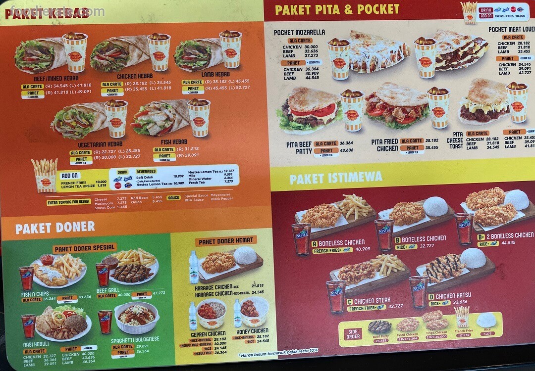 "Isian di dalam kebab: daging sapi dan sayur-sayuran, selada, tomat, dan saus. Daging beefnya enak dan wangi. Lebih puas, pilih yang big size."