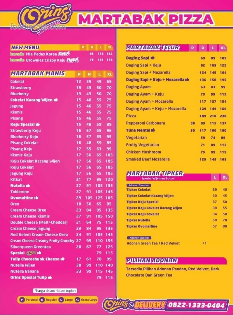 Daftar Harga Menu Martabak Orins