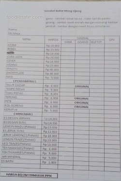 Daftar Harga Menu Sambal Bakar Mang Ujang