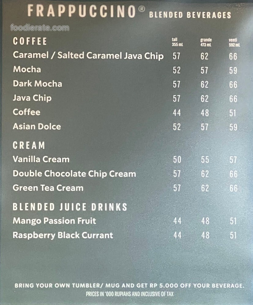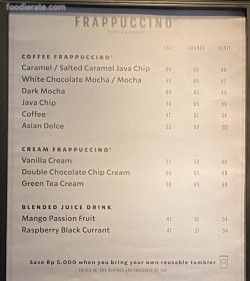 Daftar Harga Menu Starbucks Coffee