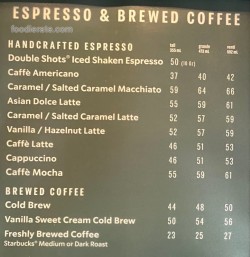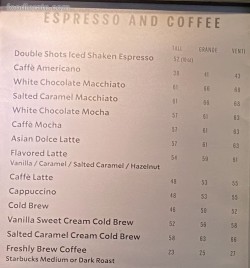 Menu Starbucks Coffee and Reviews