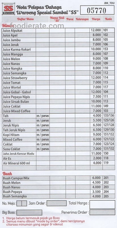 Daftar Harga Menu Waroeng SS