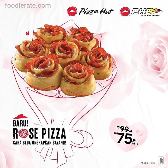 - Promo Valentine 2023 Pizza Hut : 7 pcs Rose Pizza hanya seharga Rp 75.000 net (diskon 25% dari harga normal = Rp 99.000) dan Promo Combo Spesial 7 pcs Rose Pizza + 1 Pizza Heart hanya seharga Rp 160.000 (diskon 29% dari harga normal = Rp 224.000).