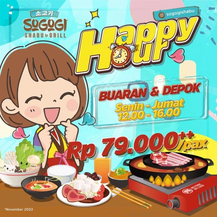 Promo Sogogi Shabu & Grill Happy Hour AYCE Buaran dan Depok Hanya Rp 79 Ribu++ / Pax