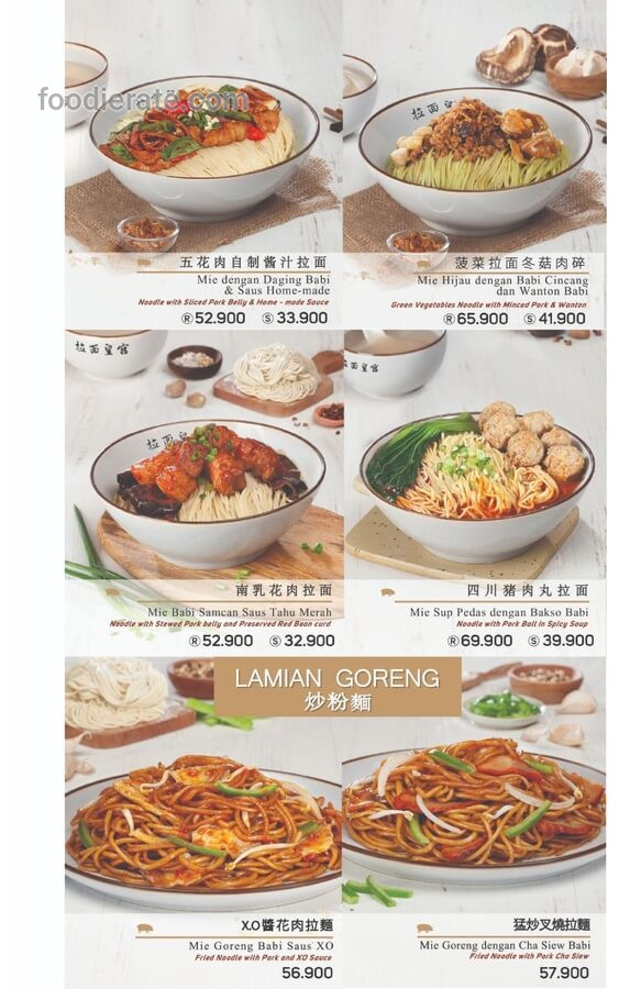 "Kalo mau makan mie yang ada babinya (non halal), bisa pesen di sini. Ada varian mie lamian yang isi daging babi paikut (tulang babi). Tulang babinya kaya dikecapin gitu. Tulang babinya sih enak. Mie lamiannya berupa kaya mie lamian goreng, dia kering datangnya, tapi lengkap dengan sup yang dipisah mangkuknya. Jadi serasa makan lamian goreng, tapi ada supnya juga. Supnya berkuah kaya sama rasa. Supnya bening, tapi rasanya enak. Kalo lagi promo, bisa dapat lamian varian ini dengan harga yang lebih murah dan porsi lebih besar (yang ukuran regular)."