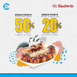 Promo Gindaco Cashbac Bonus Point 50% + 20%