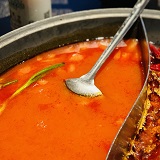 Spicy Ramen, lengkap sama daging hamburg, jamur kuping, sayuran. Yang enak kuahnya. Kelihatan gayar warnanya merah menyala, tapi rasanya ga terlalu pedas. Enak, pas. Segar-segar pedas, mantap sama tauge nya. Kalo mau lebih pedas, bisa tambah cabe.