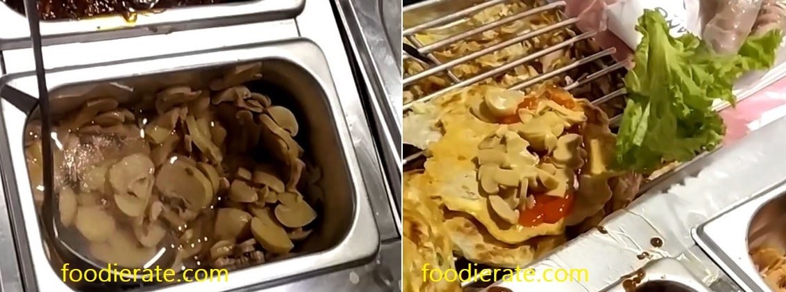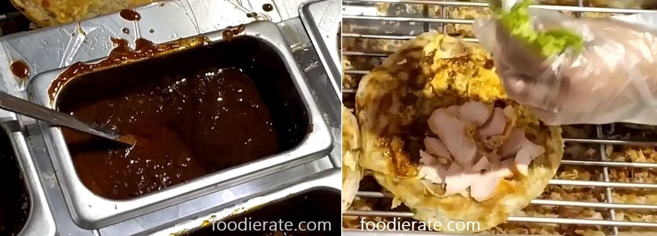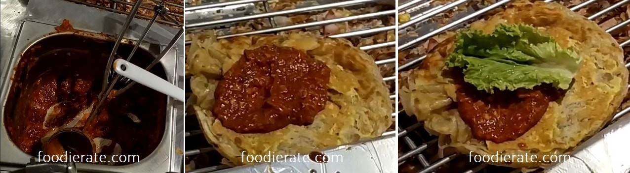 dan telur dipanggang bersama, baru diaplikasikan saus sesuai yang dipilih dan