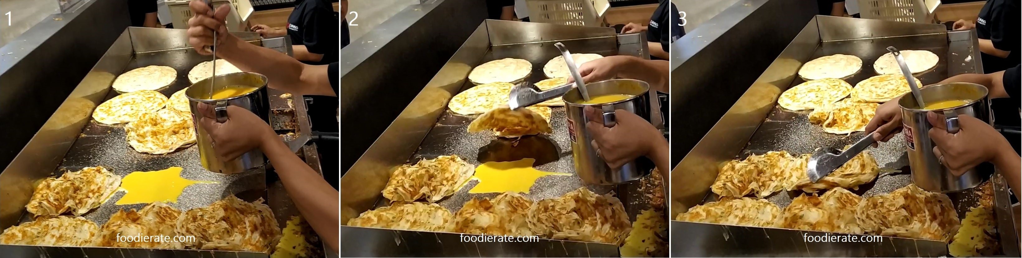 2. Di dalam gulungan roti pratanya dibubuhi dengan panggangan telur.