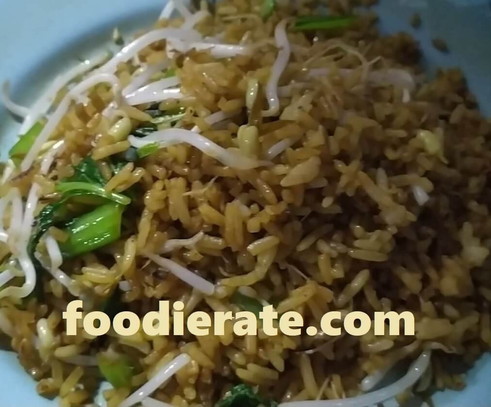 topping sayur sawi dan toge. Harga per porsi nasi goreng sayuran tanpa telor