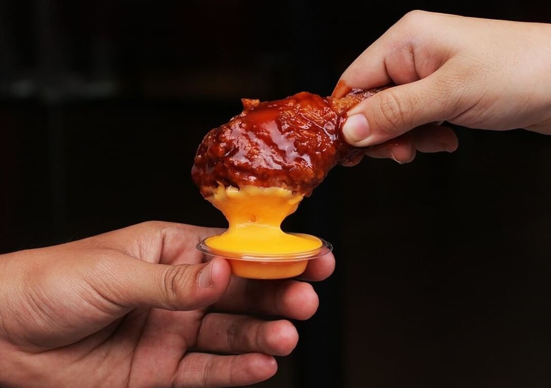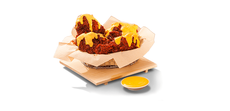 – Ayam Goreng Crispy Level Pedas dengan Baluran Saus BBQ dan Cocolan Saus Keju