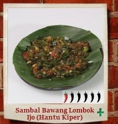 atau sambal bawang Lombok ijo. Sambal termahal yang seharga 8 ribu per porsi,