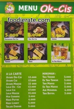 "Lagi addict dengan ayam geprek dan sambalnya, jatuhlah pilihan di restoran ayam ok-cis Ria Ricis. Ayam geprek, selain harganya enak di kantong, rasanya juga enak. Ya benar, di restoran ini, paket ayam geprek lengkap dengan nasi hanya 15 ribu. Murah meriah, makan kenyang, dapat ayam bejibun, sama sambal nampol, pedas enak. 1 nasi tidak cukup sih, jadinya nambah 1 nasi lagi (+4 ribu) bungkus pulang."