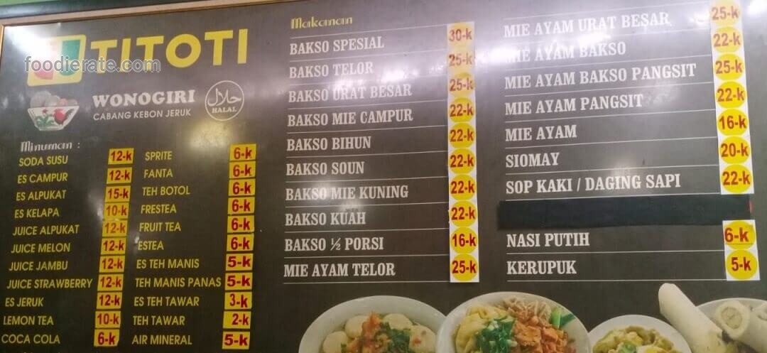 Menu Bakso Titoti and Reviews