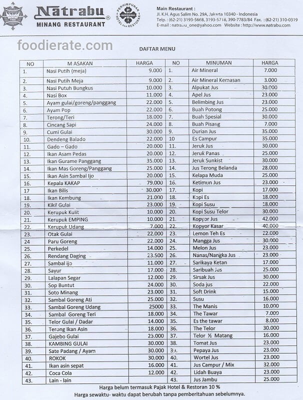 Temukan promo restoran Natrabu Minang Restaurant.