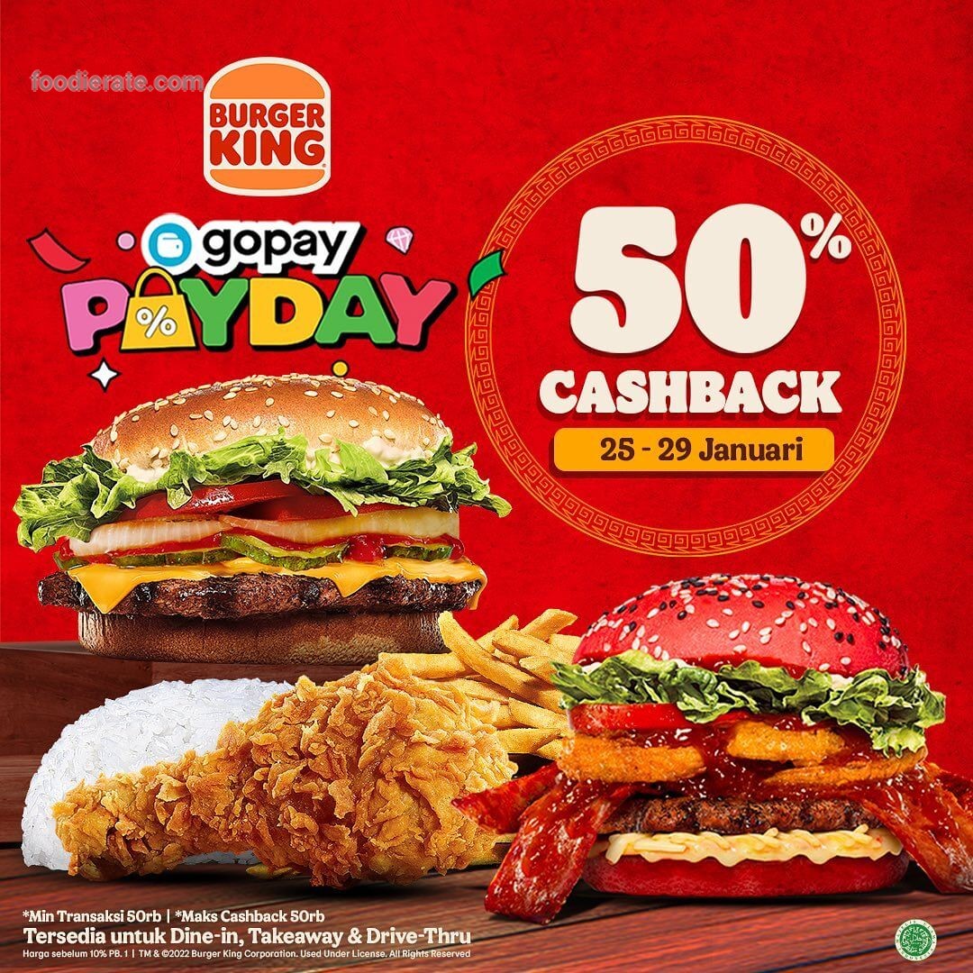 Promo Burger King Gopay Payday Cashback 50% s/d 50 Ribu