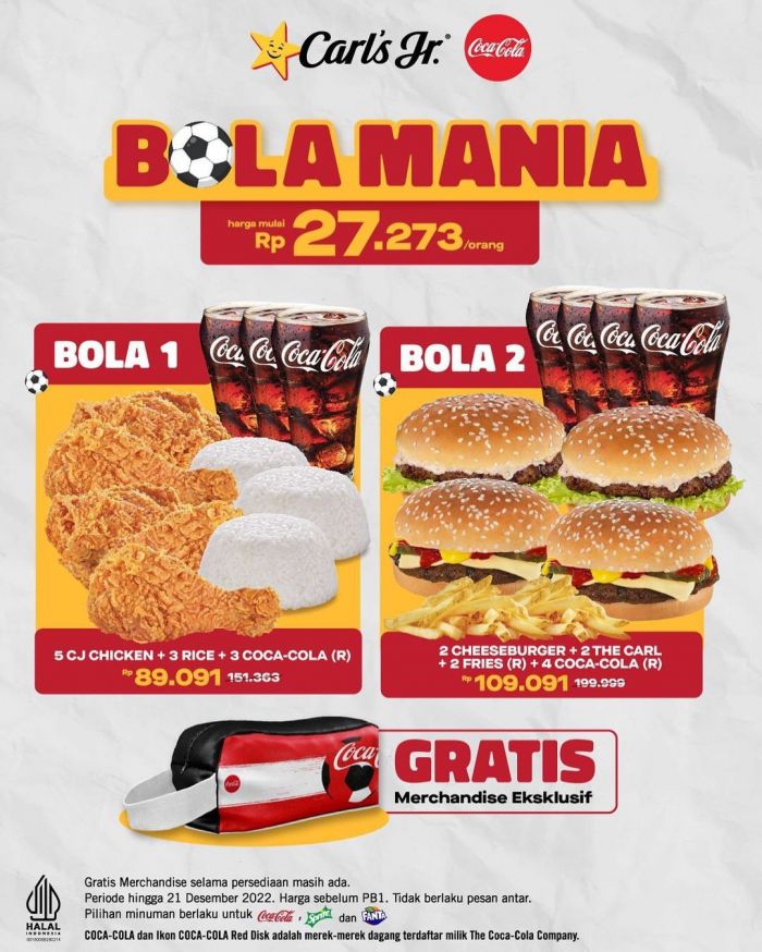 Promo Carl's Jr. Bola Mania Hanya Rp 27 Ribuan Per Orang
