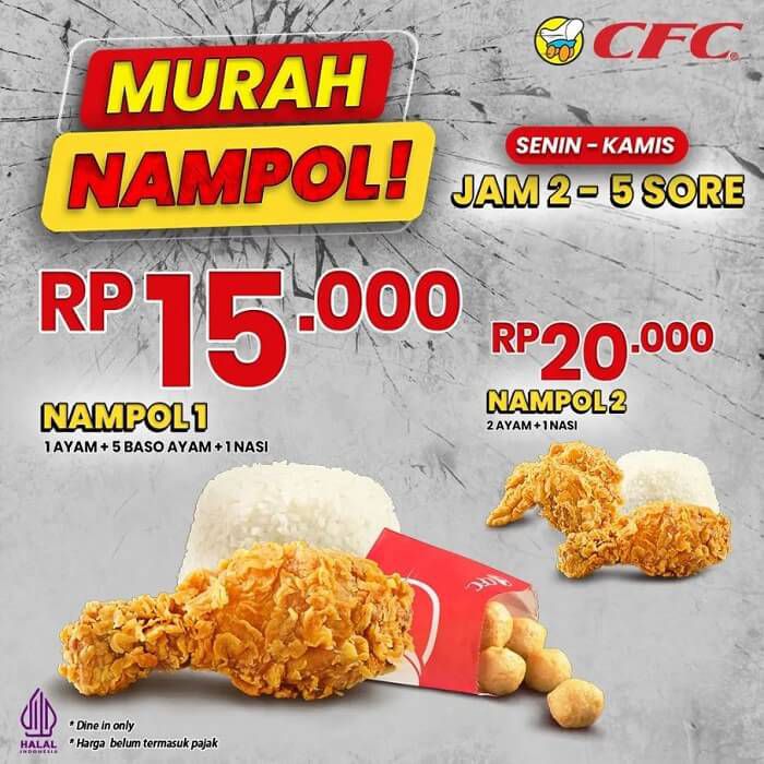 Promo CFC Happy Hour Senin-Kamis Jam 2-5 Sore Paket Murah Nampol Serba Rp20.909 Hemat s/d 65%