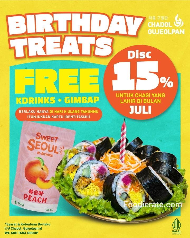 Promo Chadol Gujeolpan Ulang Tahun Diskon 15% + Free K-Drink & Gimbap Cake!