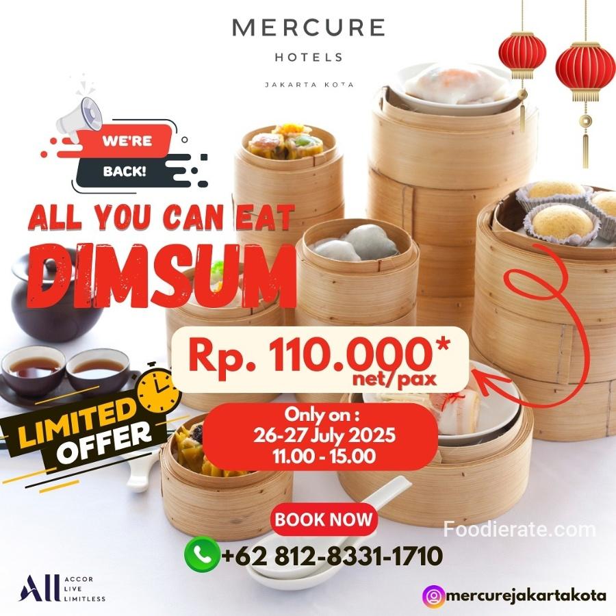 Tersedia promo All You Can Eat Dim Sum seharga Rp110.000 nett per orang hanya pada tanggal 26 dan 27 Juli 2025 pukul 11.00–15.00 di Chiao Tung, Mercure Jakarta Kota. Untuk informasi dan reservasi hubungi 0812 8331 1710.