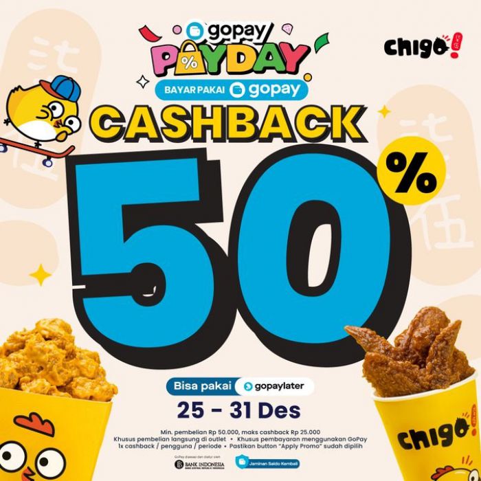 - Promo hanya berlaku dengan minimal pembelian Rp 50.000 - cashback 50% maksimal Rp 25.000.