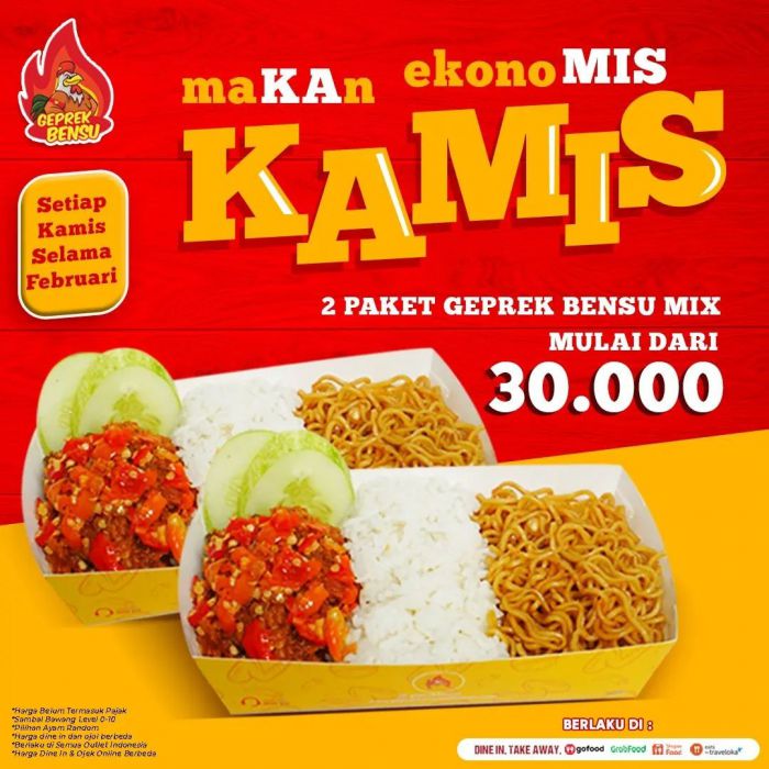 Promo Geprek Bensu Makan Ekonomis Setiap Kamis 2 Paket Bensu Mix Hanya Rp 30 Ribu