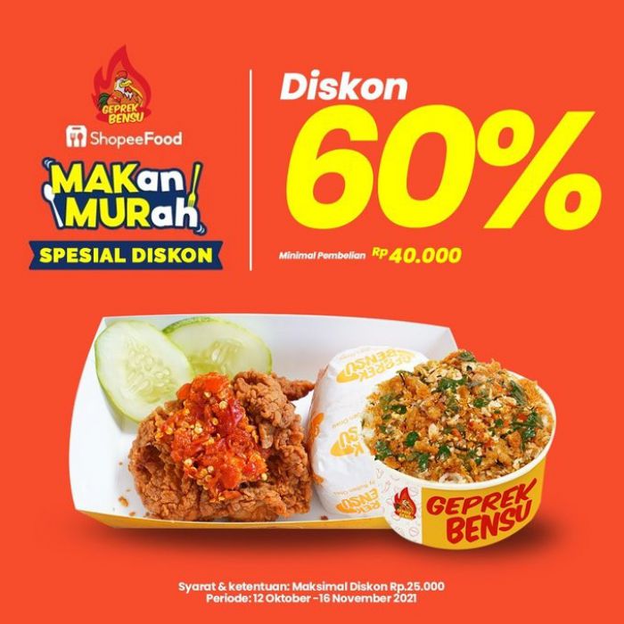 Promo Geprek Bensu Shopeefood Diskon 60%
