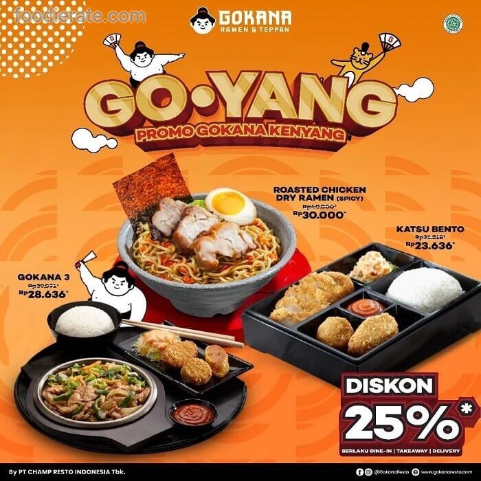 - Promo berlaku untuk Katsu Bento / Gokana 3 / Roasted Chicken Dry Ramen (Spicy).