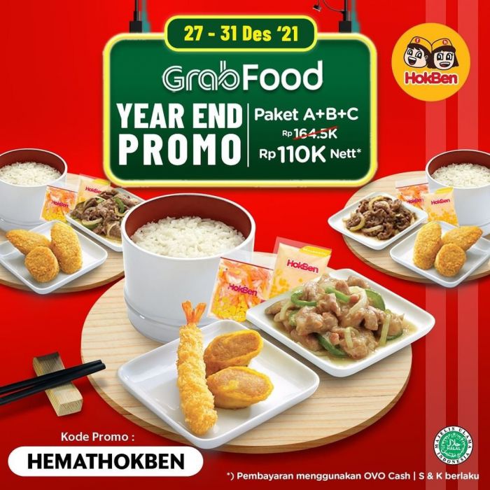 Promo HokBen (Hoka Hoka Bento) Grabfood Year End 3 Paket Rp 110 Ribu