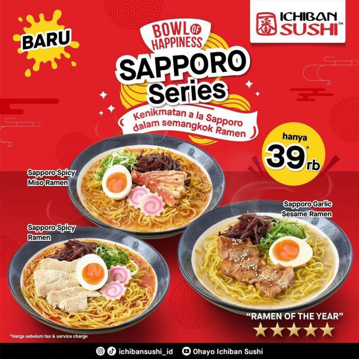- Promo menu baru dari Ichiban Sushi yaitu Ramen Sapporo Series - ramen kenyal yang dipadukan dengan creamy-nya kaldu beraroma khas garlic dan wijen - sensasinya seperti berada di Sapporo.