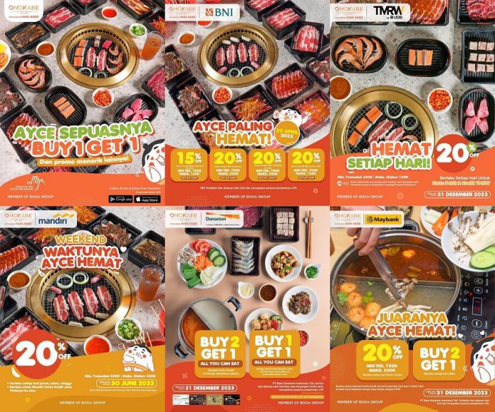 Promo Onokabe AYCE All You Can Eat Buffet Restoran dan 5 Bank: BNI, TMRW by UOB, Mandiri, Danamon, Maybank Hingga 31 Desember 2023