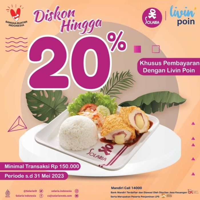 Promo Solaria Diskon 20% Dengan Livin' Mandiri Diskon 20%