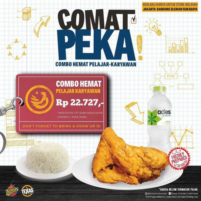 Promo Texas Chicken Comat Peka Pelajar dan Karyawan Hanya Rp 22 Ribuan