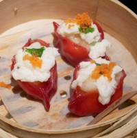 Steamed Seafood Dumplings with Crab Meat and Tobiko