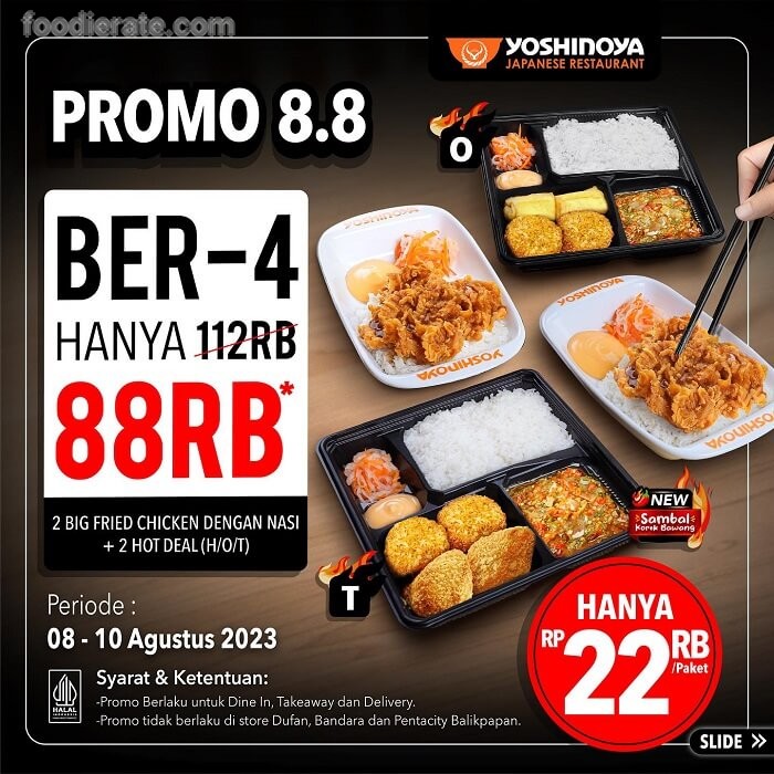 Promo Yoshinoya 8.8 2 Big Fried Chicken dengan Nasi + 2 HOT Deal (H/O/T) Hanya Rp 88 Ribu
