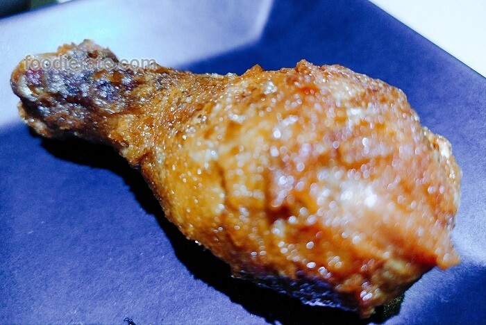 Ayamnya crunchy, rasanya asin, warna ayam gorengnya coklat.