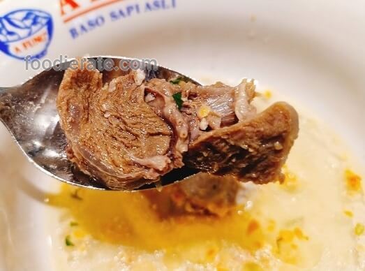 Namun, ada menu yang lain, yaitu menu porsian yang isinya bukan bakso, tapi khusus isi daging babat dan daging urat.