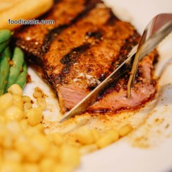Jenis daging sapi-nya bisa milih apakah mau dimasak: rare, medium rare, medium, medium well, well done. Ini pas aku makan milihnya yang medium rare. Di sekujur daging masih agak terasa susah untuk dipotong, terutama yang bagian berlemak, agak terasa alot sedikit.