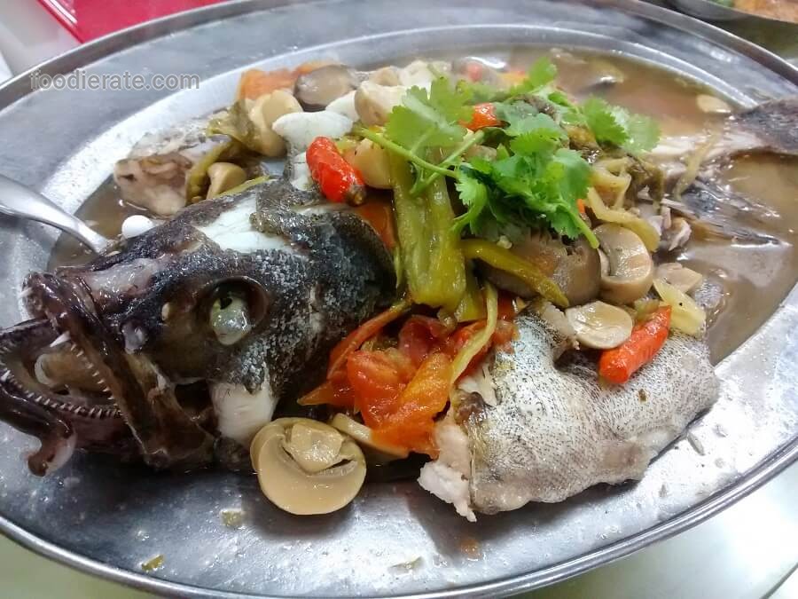 Ikan tim ala Hong Kong, ada banyak topping di ikannya - jamur, sayur asin, cabe, tomat. Rasanya asam-asam segar. Ikannya cukup besar, bisa buat beberapa orang.