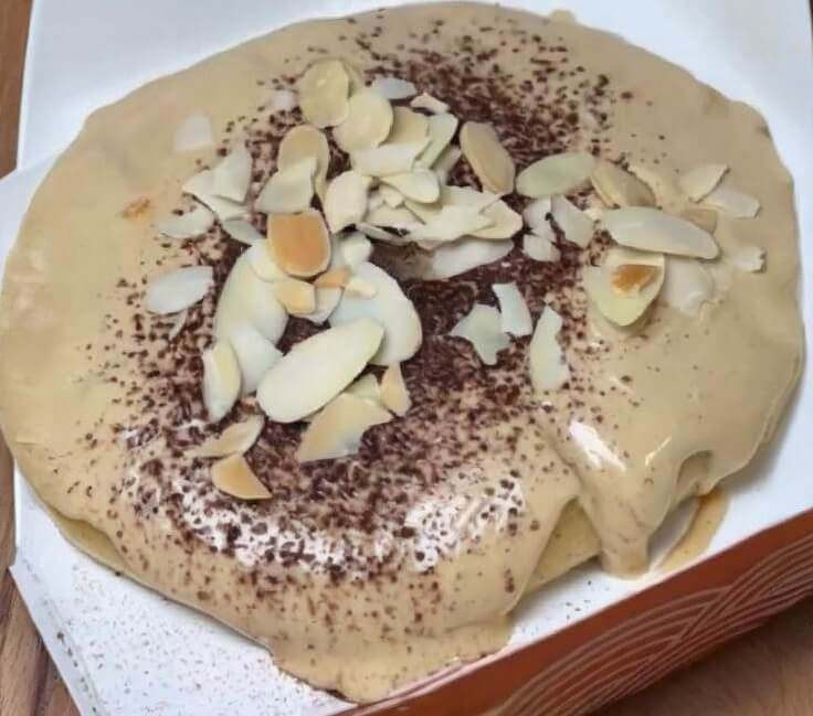 Potato bread Gamchi untuk varian Gamcapone (Gamchi Alcapone), isian topping di atasnya: almond, tiramisu, dan cocoa powder.